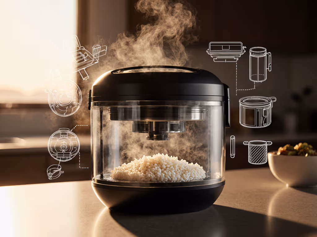Discover how rice cooker patents used temperature feedback, pot geometry, and durable coatings to deliver consistent texture across grains. Includes buyer tips.